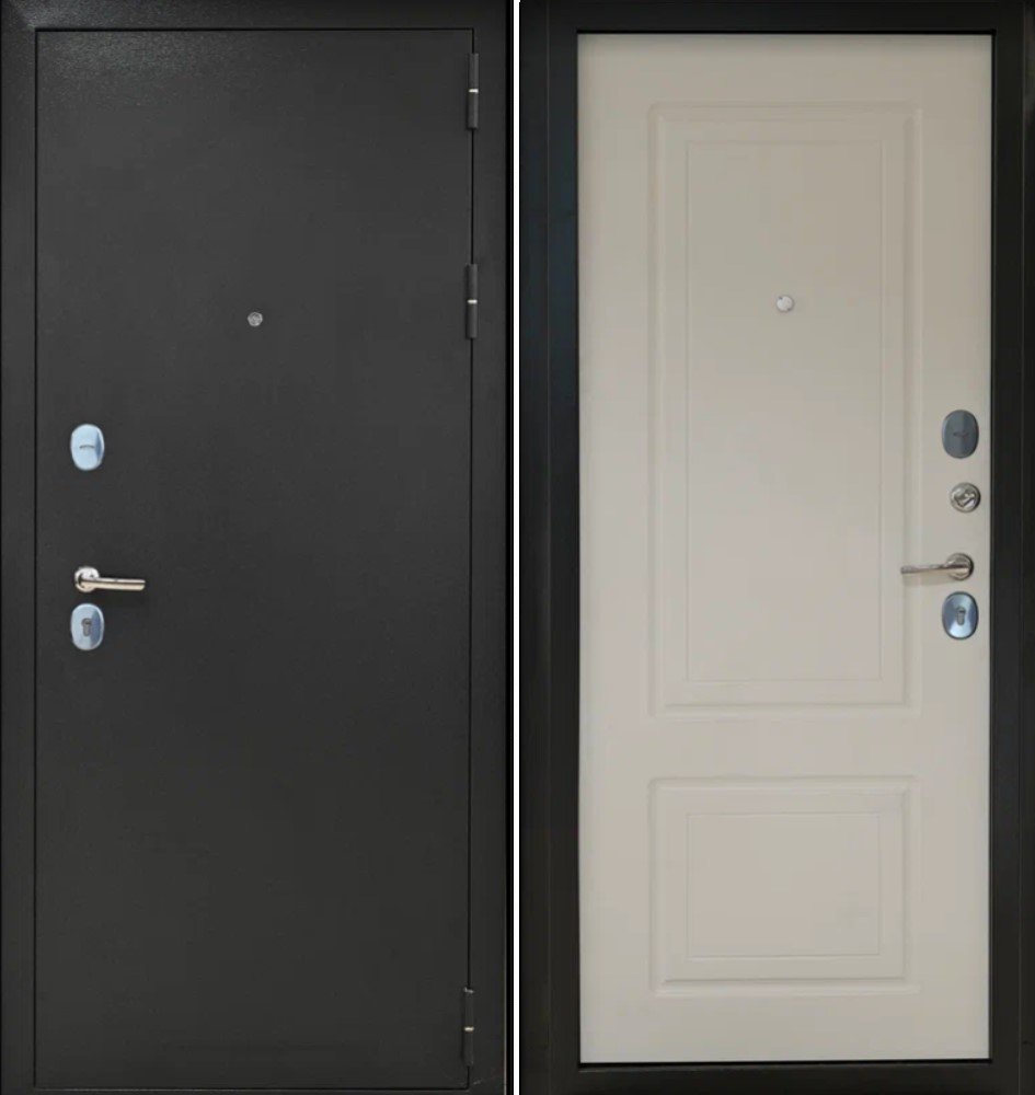 дверной глазок, ночная задвижка, ключ-вертушок, фурнитура хром овальная, декоративные накладки с защитой от продувания, комплект ключей.